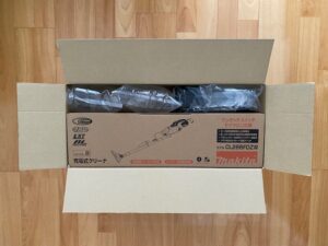 段ボールの中には、掃除機・充電器・バッテリーが入っています。
